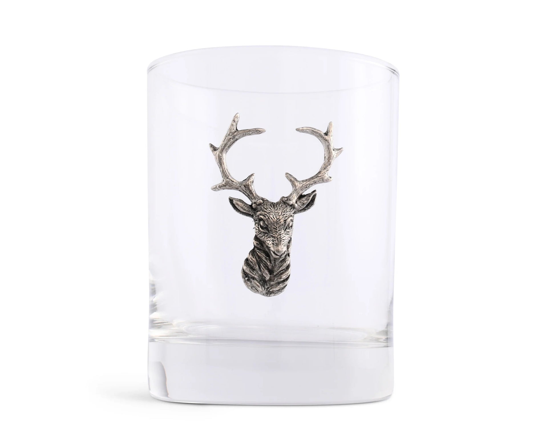 An elegant pewter elk head insignia embellishes this double old fashioned glass. The glassware is crafted to heavy bottomed, crystal clear perfection and further enhanced by the detailed, realistic elk
