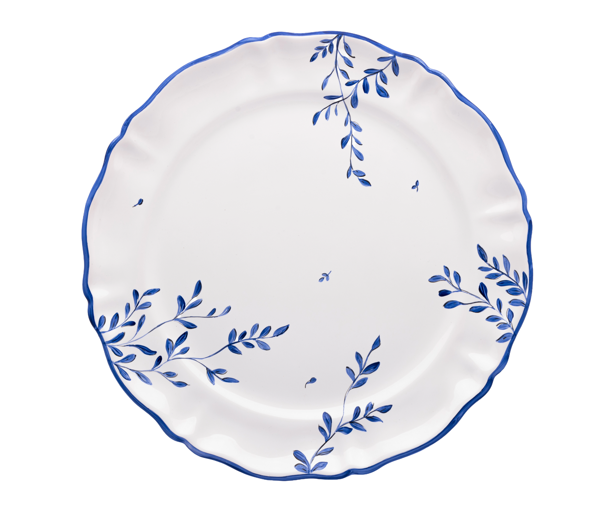 Add a touch of elegance to your table with the Blue Moustier Charger Plate. This plate offers a timeless and versatile design with a graceful blue vine pattern on a crisp white ceramic background. Its scalloped edges, accented with a bold blue rim, provide a sophisticated detail that enhances any tablescape.