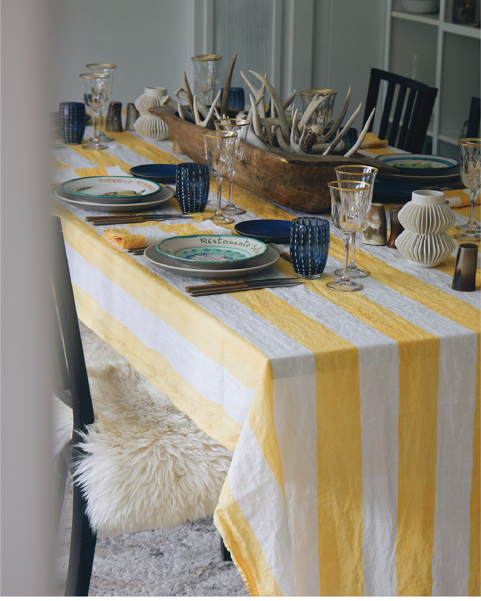Stripe - our colourful rendition of happy moments made on Mediterranean escapes in bygone days. These stripes printed on 100% linen will transport you and your guests back to those hazy days at the height of Summer. Size is 65 inches wide by 150 inches long.